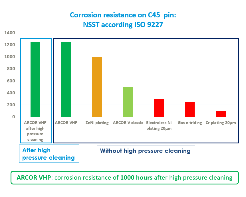 One of HEF’s major advancements in surface treatment is the development of the ARCOR VHP range. This innovative process achieves exceptional levels of corrosion resistance, with tests demonstrating resistance exceeding 1,000 hours in salt spray conditions.