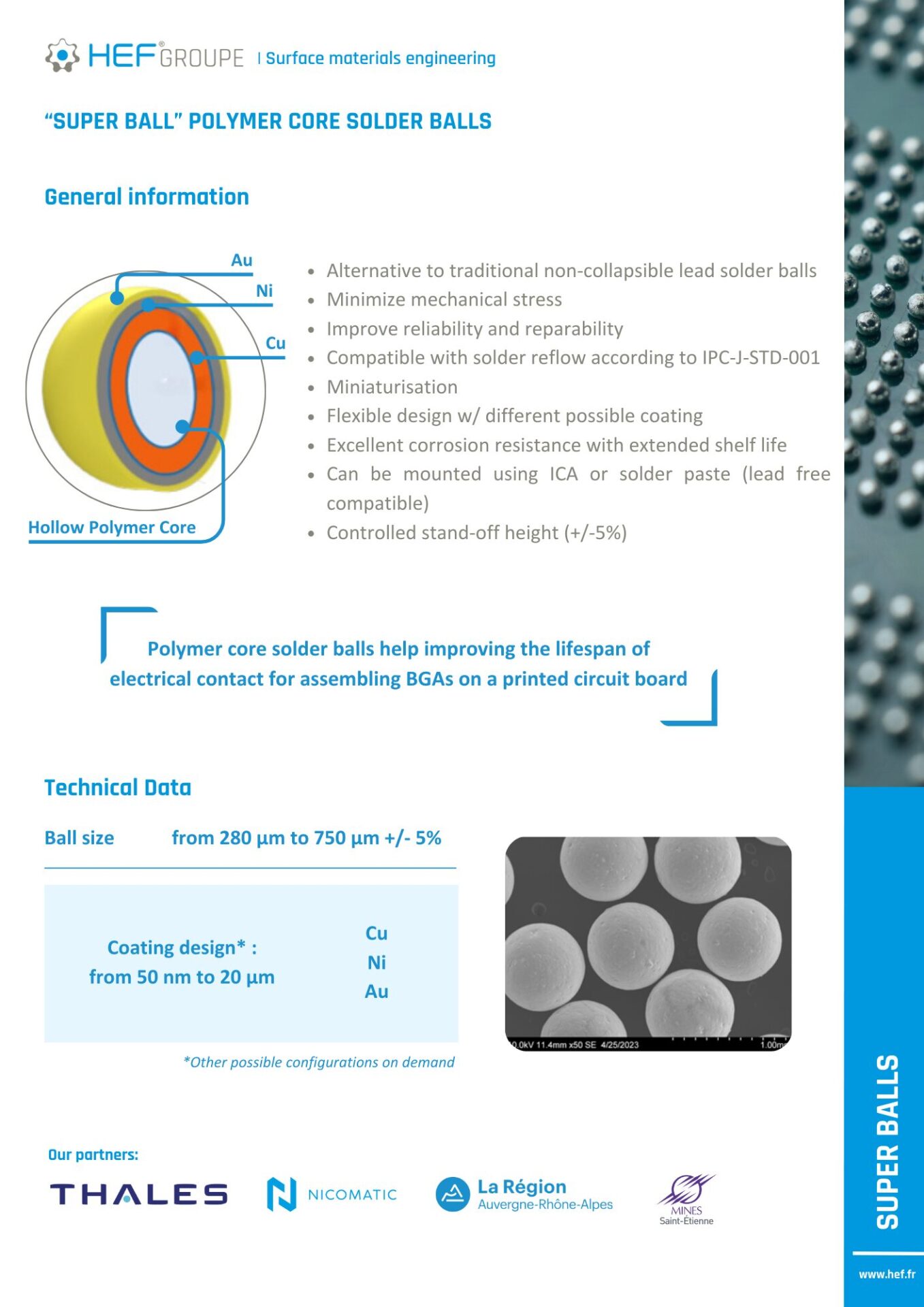 HEF has developed polymer-core solder balls, thanks to a collaborative project initiated by Thales .