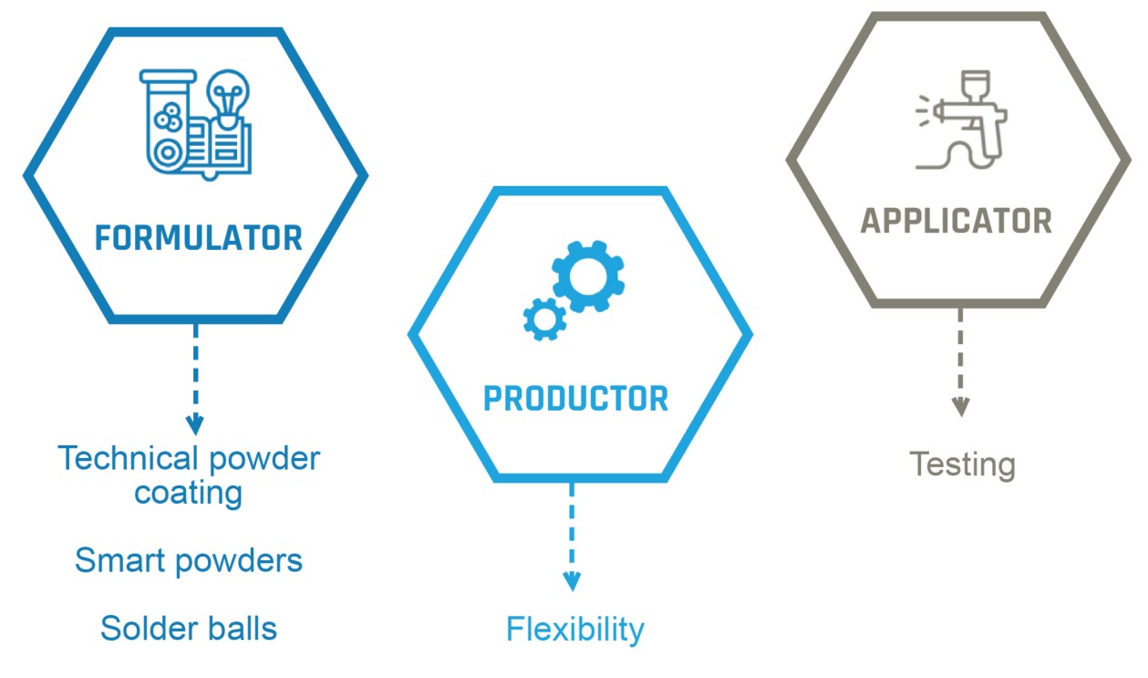 HEF propose la formulation, la fabrication et la mise en œuvre des poudres pour une offre de service complète.